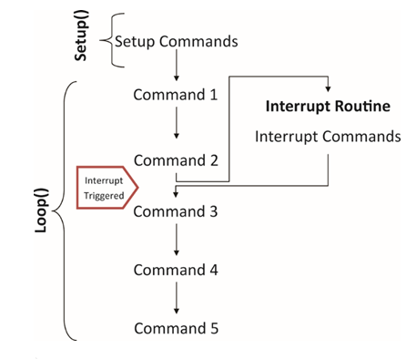 - Loop()문이 돌다가 어떤 event가 생기면 원래 하던 loop문을 낮은 우선순위로 두고 원하는 프로세스를 실행한다는 개념이라고 보면 된다.
