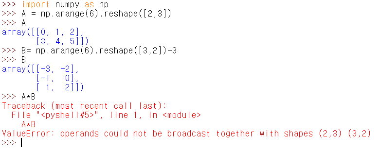 다음의 예제는 2x3 행렬과 3x2에 대한 * 사용 예이다.