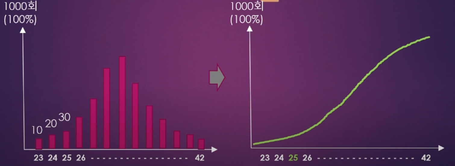 이 데이터를 가지고 누적 그래프를 만들면, 해당 날짜 몇일 내에 끝나는 지를 확률로써 말할 수 있는 것이다.